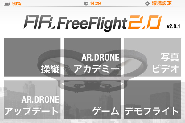 画面下の緑色の「TAKE OFF」を押すだけで浮上します!