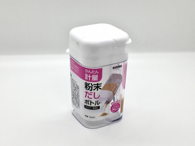 こちらの商品は、ひとふりで小さじ約1杯分が出てくる、特殊構造の粉末だしボトルです