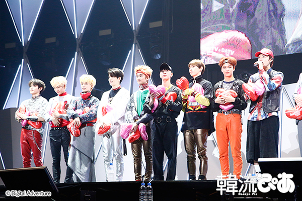 NCTには、関西出身の日本人のメンバーのユウタがおり、MCでも大活躍。関西弁で「僕たち緊張しとって」と、初々しくはにかみ、このステージで「NCTの魅力を見せられたら」と意気込みを語る。また、「(他の)かっこいい先輩たちに見惚れんとってな!」と茶目っ気たっぷりで、「これから日本でも活動できるように頑張りますので、みなさん、期待してください!」と呼びかけた。そして、今年7月にデビューした7人組ユニット、NCT 127(エヌシーティー・イチニイナナ/イルイーチル)のステージへとつなぎ、7人は、『Once Again』とデビュー曲『Fire Truck』のダイナミックなパフォーマンスで会場を沸かせた。