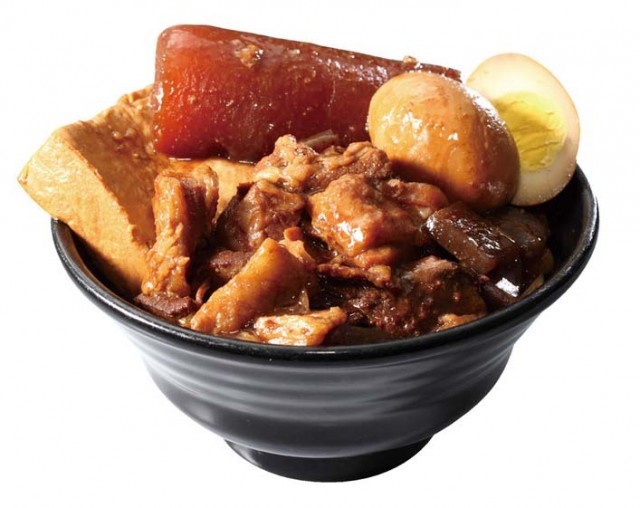 岡むら屋の看板商品「肉めし」(税込490円)は、大鍋で角切りの牛バラ肉等の部位と、合せみそなど独自の味付けでじっくり時間をかけて煮込み、玉ねぎ、豆腐等の具材とともにご飯に盛ったもの。