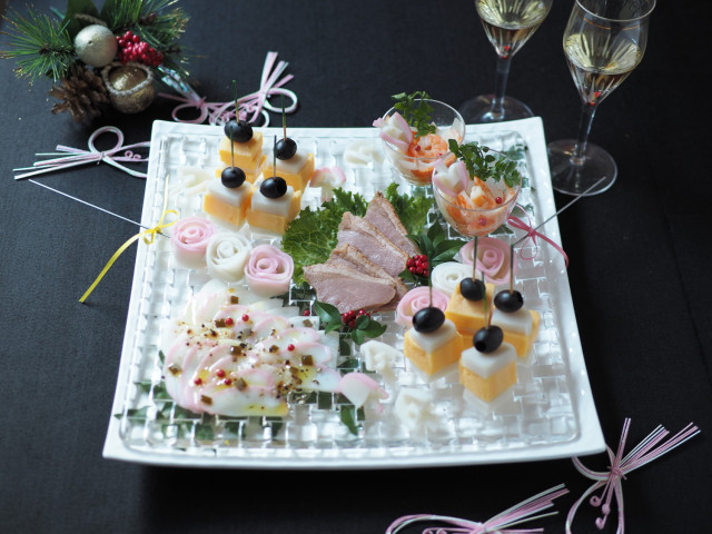 小林「蒲鉾は薄くスライスして、千枚漬と交互に並べればカルパッチョ仕立てになります。一口大に切って、ようじで止めればピンチョス風に!」