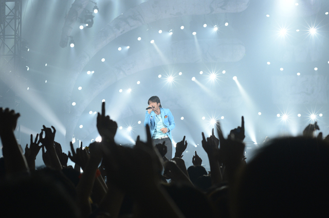 「完全にあったまっているようなので、何も言うことはありません! LとOとVとEが、この会場を包むことを期待しています」との桜井和寿のMCから歌われたのは、『youthful~』からさらに時間をさかのぼって’93年のアルバム『Versus』収録の『LOVE』。そこから’08年の『GIFT』、さらに’97年の『Everything(It’s you)』へと、20年という時間を自在に行き来しながら、文句なしの名曲が次々と披露されていく。