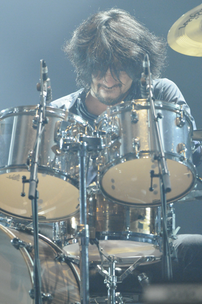 ふたたびメインステージに戻って、ここからは“スタジアムバンド・Mr.Children”の本領発揮だ。「ROCK AND ROLL IS NOT DEAD」の文字がスクリーンに浮かぶ中オーディエンスに力強く呼びかけるように歌われる、最新アルバム『SENSE』収録の『ロックンロールは生きている』。’05年のアルバム『I●U』(※●はハート)収録の『Worlds End』では、アルバムジャケットの潰れたトマトを髣髴とさせる真っ赤な照明でドームが染まる。さらにイントロの必殺リフからすでに絶頂の『fanfare』では大合唱がドームいっぱいにこだまする。この尋常でないスケールのパフォーマンスも、紛れもなくMr.Childrenの“等身大”だ。