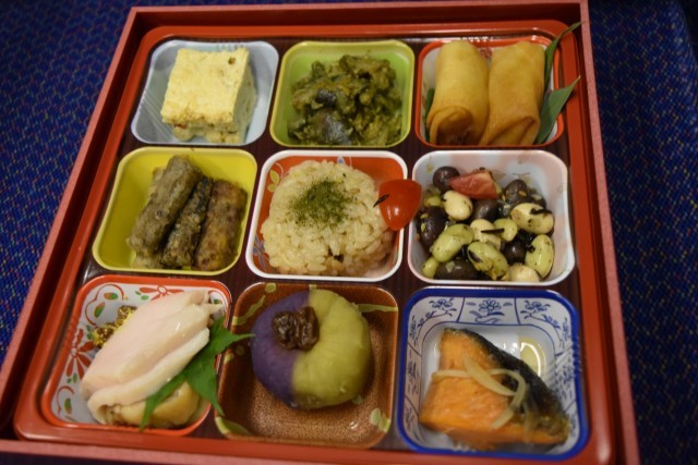 当日お弁当は1・2名席とグループ席には「中国割烹旅館 掬水亭」の『秋の特製中華御膳』が配られるのですが、今回は「女子会席」を予約すると、「和食創作料理 SASAYA-楽屋-」の『地元食材を使ったおつまみ弁当』が提供されます。