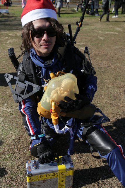 サンタ帽で緊迫感4割減の「Death Stranding」サム(ちゃんとBBを抱いてます!)に、Eveの楽曲『ドラマツルギー』PVコスプレなんて渋いチョイスも。そうそう、場内になぜかピクミンが大増殖していたり、ふと足元を見るとギリースーツが!