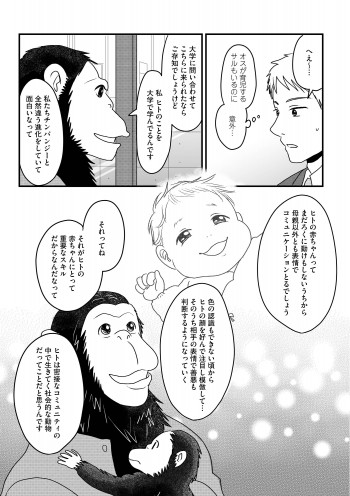 あと最後のほうのヒトとチンパンジー、ボノボ(ヒト科チンパンジー属の類人猿)の違いの部分はとても気に入っています。表現や、どうまとめるかという部分に一番頭を悩ませた箇所でもあります。