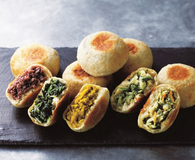 [長野]信州・鬼無里いろは堂/炉ばたのおやき(野沢菜、ねぎみそ ほか、1個)各221円 〈実演〉