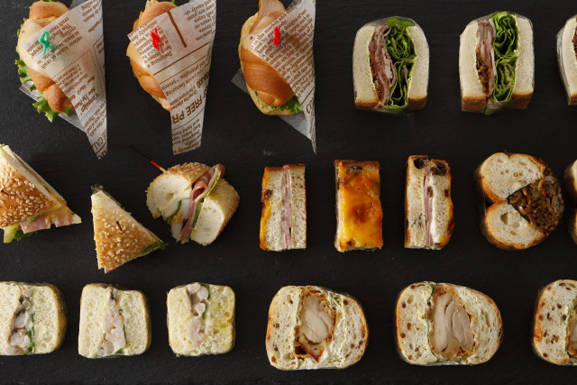ローストビーフ&レタスサンド きんぴら牛蒡サンド だし巻きたまごサンド シュリンプタルタルサンド レモン香るスモークサーモンサンド 茸と海老のアヒージョサンド りんごとさつまいものベーグルサンド B.L.T.Eベーグルサンド