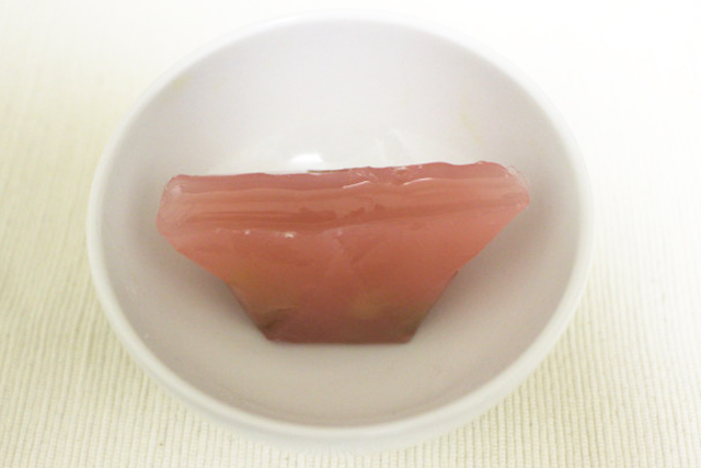 「干支 子」は、逆三角形の形が珍しい紅羊かん。薄ピンクの淡い色合いの羊羹は、高級な印象。口あたりもまろやかな羊かんは、白小豆かのこによるもの。干し菓子と、羊かんの組み合わせは、目上の方への差し入れや、帰省の時のお土産としても絶対に外しません。