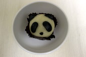 子の文字が刻印された「干支菓子 子」は、口の中に入れるとホロホロと溶けだす黄味羽二重あんが上品な味。さらに、中央には香り高い抹茶あんが入っています。