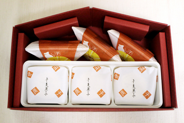 絵馬を取ると、なかには干菓子と羊かんがセットになっています。