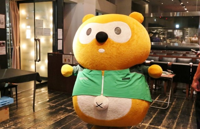 会場となった東京カルチャーカルチャーでは、ポンタがお出迎え。西関東営業部の星飛馬部長(本名です!)による挨拶のあと、「カンパイ」ではなく「食べつくすぞ! オー!」の掛け声でイベントが開始した。