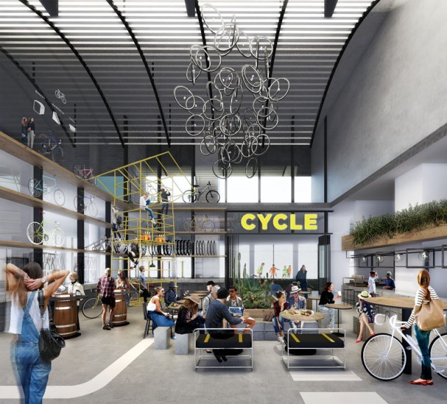 日本ではまだ珍しい、サイクルカフェが4階にオープンする予定で、自転車通勤者のリフレッシュと憩い、交流の場として機能しそうだ。