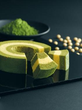 宇治の抹茶に煎茶をブレンドした抹茶生地と、京都産の豆乳を使用した豆乳生地を層に重ね焼き上げたしっとりふんわりのバームクーヘン。