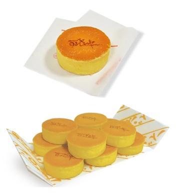 一口サイズのカステラ饅頭。あっさりした甘さの「白こし餡」とカステラのバランスが絶妙。店頭ではカッチャン、カッチャンと機械がお饅頭を作る様子を見られて楽しい。一つから買えるほか、個別密封包装したロングライフタイプもある。