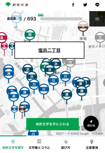 『都営バスで巡る、地形テキストラリーGPS』は、都営バスに乗って、バス停に潜む地形由来の文字を集める、スタンプラリー。