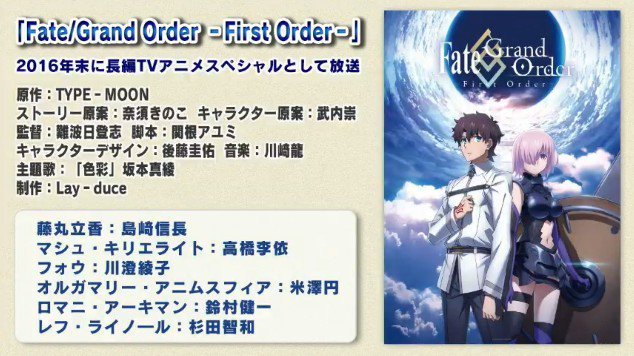 ニコニコ生放送で配信された特番「Fate/Grand Order カルデア放送局SP“EXTELLA”発売記念特番」にて発表され、スタッフやキャスト情報も明らかになっています。