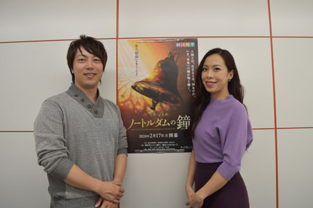音楽は、ディズニーの長編アニメーション版に基づき、「陽ざしの中へ」「世界の頂上で」など、作曲アラン・メンケン、作詞スティーヴン・シュワルツの名コンビによる美しい楽曲揃い。15世紀末のパリを舞台に、ノートルダム大聖堂の鐘楼に住むカジモド、大聖堂大助祭・フロロー、同警備隊長・フィーバス、ジプシーの娘・エスメラルダの4人が織りなす深く美しい愛の物語。“大人がハマる”、ディズニーの新たな側面が楽しめる話題作に出演予定のカジモド役のひとり・飯田達郎、エスメラルダ役のひとり・松山育恵が本作の魅力を語ってくれた。
