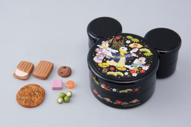 毎年定番のミッキーシェイプのお重に入ったお菓子の詰め合わせセット。