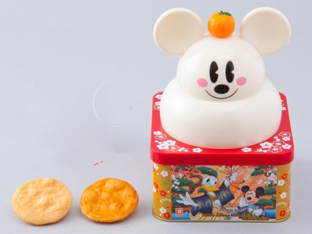 ミッキーの鏡もち風ケースに入ったおせんべいセット。