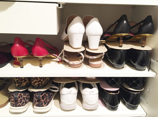 これは、靴箱の収納量を1,5倍~2倍ほどアップしてくれる、靴の収納グッズ。色んな便利グッズがありますが、靴の収納はこれが最も使いやすく、そして収納力も抜群なので、ぜひ使ってみてください。