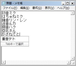 「かさねてと」と入力すると「重音テト」と非公式キャラクターの名前がサジェストされます。