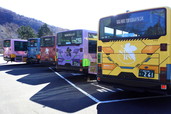 また、箱根・小田原エリアでは各機体のカラーリングやキャラクターイラストが描かれたバスが走行中。