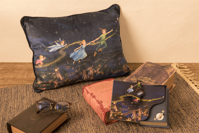 ピーター・パンがウェンディたちとロンドンの夜空を飛ぶシーンもクッション(2,700円)などのおしゃれなグッズになりました。