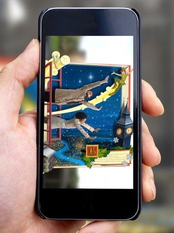 ティンカー・ベルの妖精の粉とともに、ロンドンの街へと飛び出すピーター・パンが描かれたフォトロケーション。