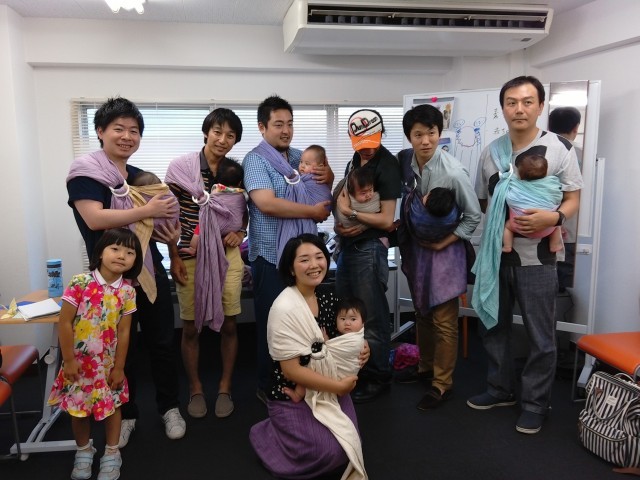 「抱っこ講座」に参加したパパたち。さぁ、パパの出番ですよ!