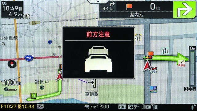 サイバーナビならドライブ中の安全をしっかりサポート。車間距離が詰まったり車線のフラツキなどを表示&警告音ですぐにお知らせ。「右折時のつられ発進」でも注意を喚起。大事な家族を守ってくれる。