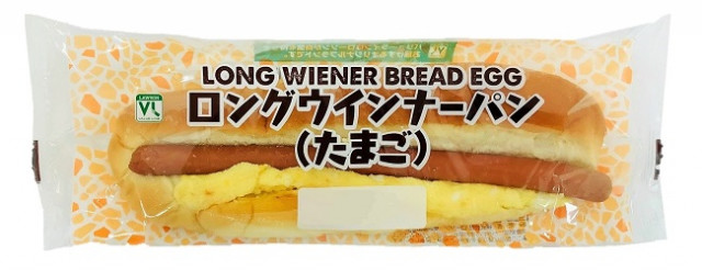 パンから飛び出しそうな約23cmのウインナーとたまごサラダがトッピングされた迫力満点のパンです。