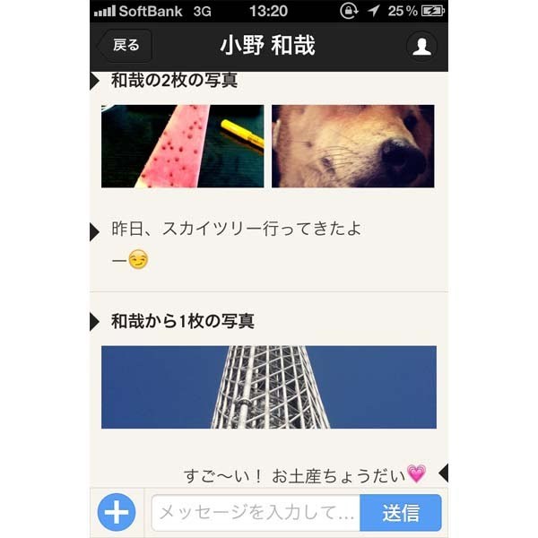 連絡先の交換が完了したらアクティビティ画面が表示され、そのままメッセージや写真が送れるようになっているんです。