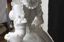 ファンにはおなじみの中指を立てたポーズを再現した彩色済みの原型が披露されています。