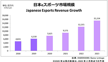 KADOKAWA Game Linkageは、eスポーツの市場動向について、2019年の市場規模および内訳、23年までの成長予測、ファン数(試合観戦・動画視聴経験者)の推移を2月13日に発表した。