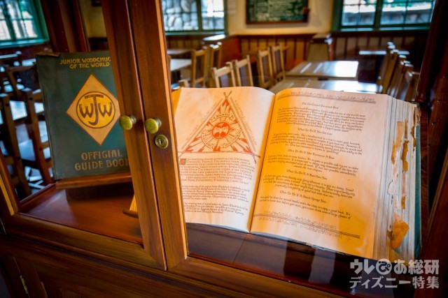 レストラン「キャンプ・ウッドチャック・キッチン」1階奥の部屋や、デイジーダックに出会える部屋の壁には「J.W.W SECRET CODE」と書かれたものが貼られています。
