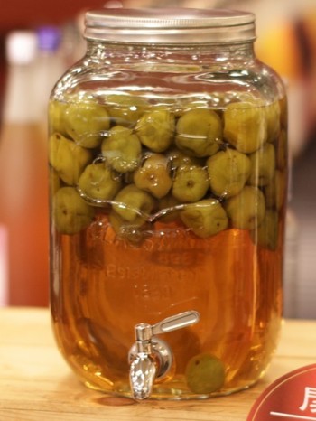 蛇口をひねると出てくる特製のガラス瓶から提供される、できたて梅酒をぜひ味わってみてはいかがでしょう。