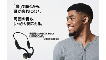 ドン・キホーテ(ドンキ)は、2月19日にプライベートブランド「情熱価格プラス」で骨伝導ワイヤレスイヤホン「JOGBONE(ジョグボーン)」を発表した。税別価格は5980円。2月21日に全国の系列店舗(一部店舗を除く)で発売する。