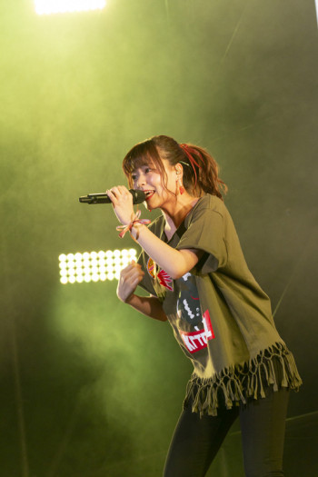 “一番槍”となったチカのキャラソン「ポッピンヒーロー」を富田美憂さんがお披露目。コールアンドレスポンスもあり、元気一杯のチカらしい楽曲に会場も盛り上がります。続いてはエンマのキャラソン「Poison Dahlia」を歌う幸村恵理さんの番に。