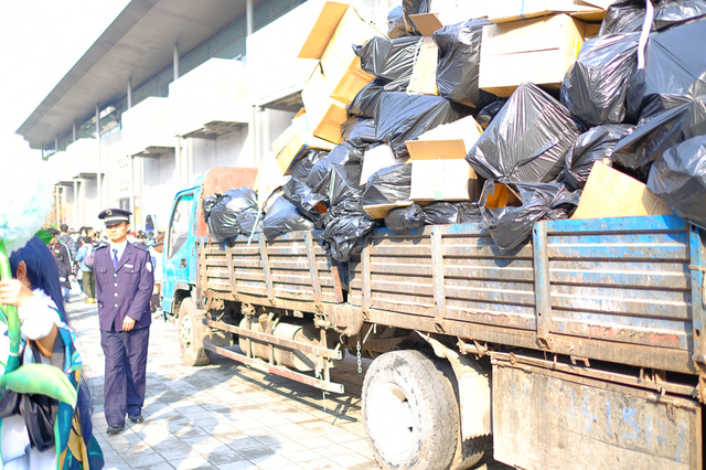 上海CPのコスプレエリアはとにかく広い!ホールとホールの間にあるスペースがメインのコスプレエリアになるのですが、歩けなくなるほど混雑はしません。会場が工事中のため、巨大トラックがコスプレエリア何度も行き来しても大きな問題が起きないほど。