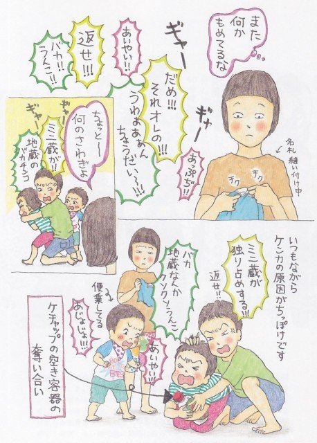 ――兄弟がいれば、とくに歳が近ければ余計に、ケンカもたえないですよね。子どもたちは、どんなことでケンカしていますか?