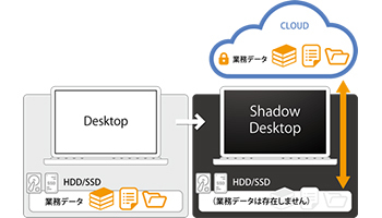 Shadow Desktopは、PCのデータをクラウドに格納し、PC本体のストレージにはデータを保存しないので、万が一PCを紛失してもデータの漏えいや紛失の恐れがないため、テレワークに適している。