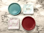 形は、写真に掲載されている、丸皿、ボウル、マグカップの他に、もう少し大きな丸皿もあるそうです。筆者が訪れたダイソーでは、人気商品のためか、大きいサイズの丸皿は見つけることができませんでした……。