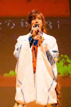 鐘ヶ江が源九郎義経、小南が有川将臣の衣裳姿で客席から登場すると、会場からは大きな拍手と歓声が。(登場前に中村から「大きな歓声で出迎えてね!」とのアナウンスがあったことは内緒だ)