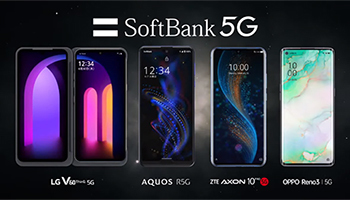 ソフトバンクが5G対応端末として発売するのは、シャープ「AQUOS R5G」(販売価格12万9600円)、ZTE「ZTE Axon 10 Pro 5G」(8万9280円)、LGエレクトロニクス「LG V60 ThinQ 5G」、OPPO「OPPO Reno3 5G」の4機種。なかでも、OPPO Reno3 5Gを取り扱うのは、ソフトバンクだけだという。