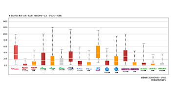 調査期間は、2月4日から2月6日までの平日3日間で、主要3都市である東京、名古屋、大阪の主要駅で、各駅1カ所ずつ9~10時、12~13時、17~18時と三つの時間帯で、2アプリで各サービス5回計測した。