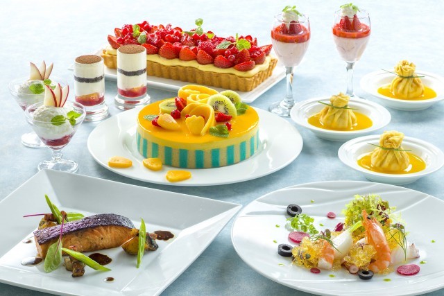 デザートは、ドナルドカラーのクレープシュゼットやドナルドの足跡に目が留まるマンゴーのケーキなど、好きなものを好きなだけ楽しめます。