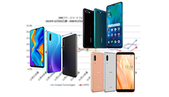 シリーズ別で大きく伸びているのがシャープの「AQUOS sense3」。圧倒的人気を誇るファーウェイの「HUAWEI P30 lite」を1.3ポイント上回り、首位に立った。OPPOの売れ筋である「OPPO Reno A」「OPPO A5 2020」も引き続き、好調をキープ。サムスンの「Galaxy A20」「Galaxy A30」がトップテン入りを果たしていることにも注目したい。