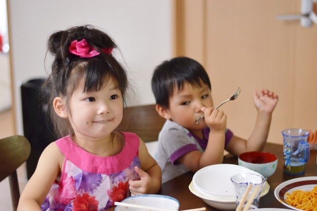 子どもは早く食べたいために、一度にたくさん頬張ってしまうことがあります。食べ物は少量ずつ口に入れて、よく噛んで食べるようにさせましょう。