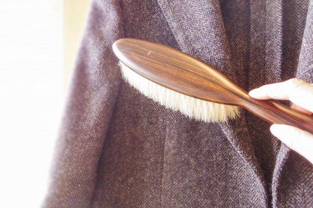 ウールやカシミヤのコートやパンツなど、シーズン終わりにはクリーニングが欠かせない冬の衣料には『ブラシの平野 洋服ブラシ手植え水雷型』が大活躍。